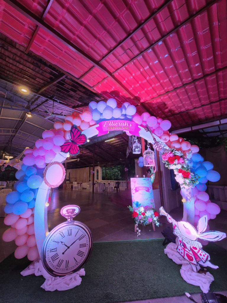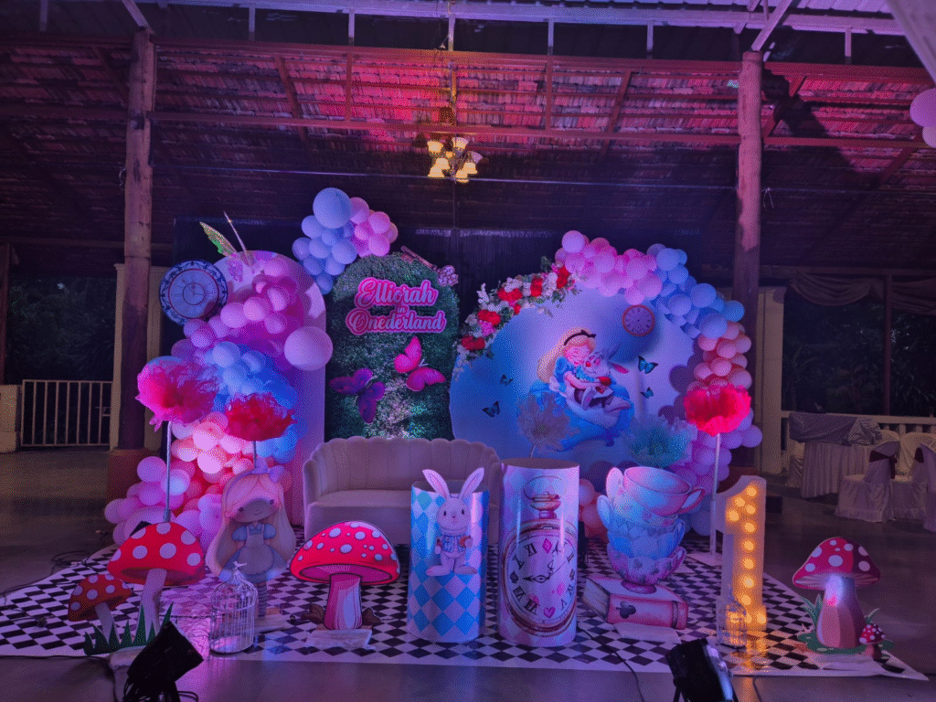 We built a vibrant stage featuring giant teacups, charming mushrooms, and Elliorah’s very own White Rabbit to complete the fantasy. The décor seamlessly blended dreamy florals, soft lighting, and intricate props so families could lose themselves in the magic and make unforgettable memories. For us, it’s never just décor it’s an experience. And seeing Elliorah and her guests light up with excitement was the ultimate reward. This Wonderland-themed birthday is proof that with the right imagination, décor can turn any event into an extraordinary adventure.